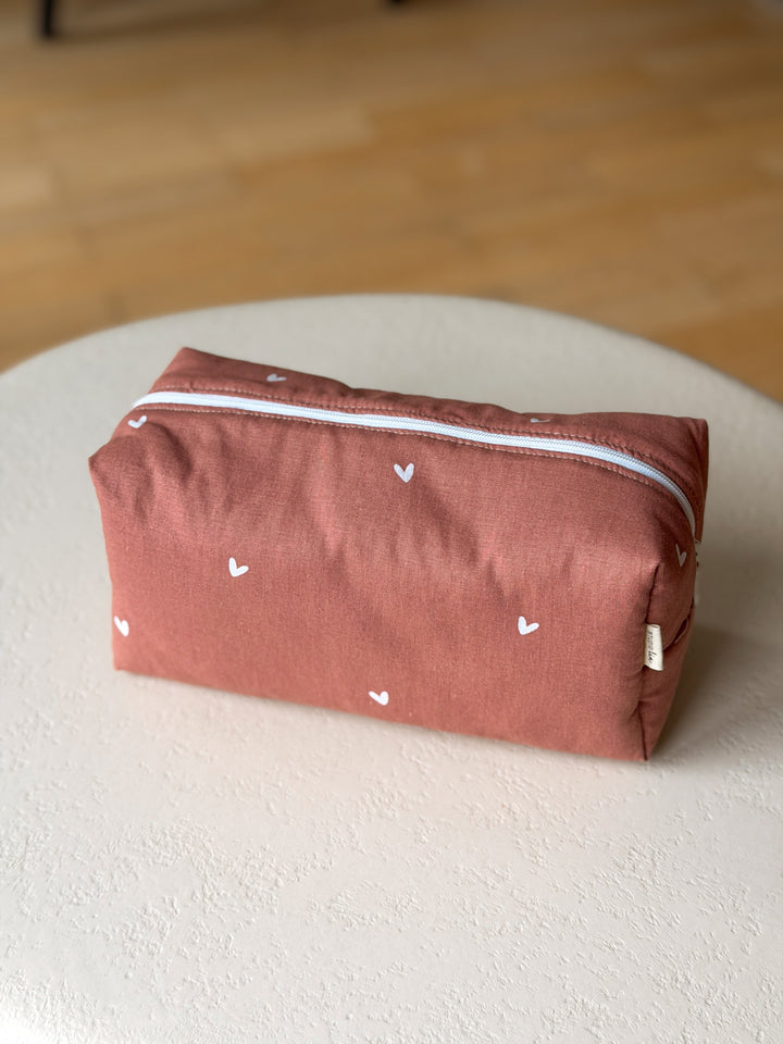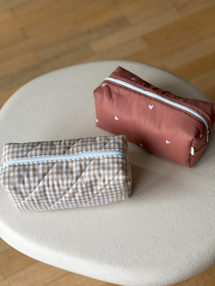 Met zijn zachte, gewatteerde stof en speelse prints biedt hij voldoende ruimte voor al je verzorgingsproducten en make-up. Of je nu thuis bent, een weekendje weg gaat of op vakantie, deze toilettas houdt je essentials altijd netjes bij elkaar.