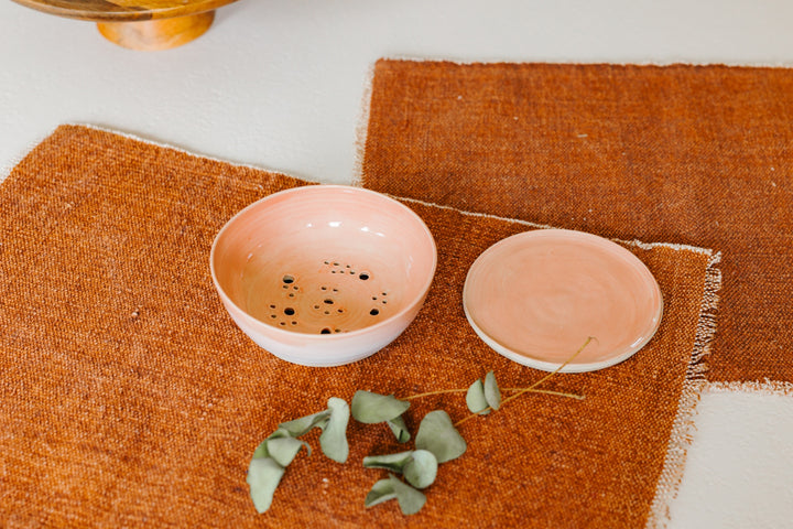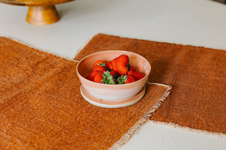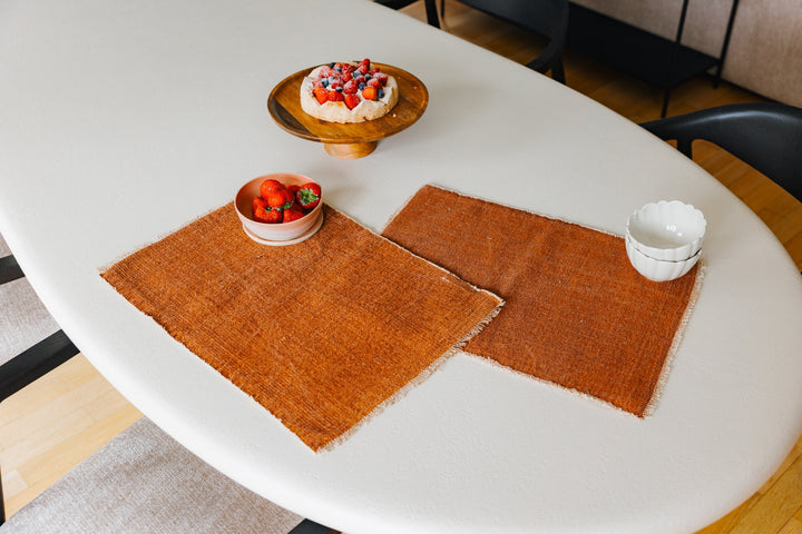Deze katoenen placemat in een diepe roestkleur brengt warmte en karakter aan elke tafel.