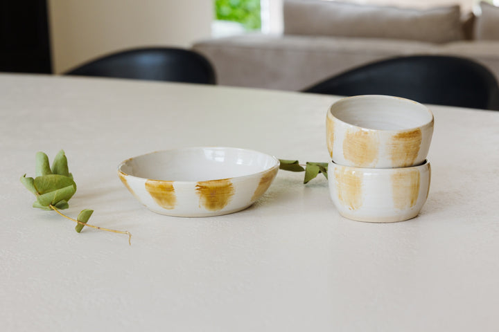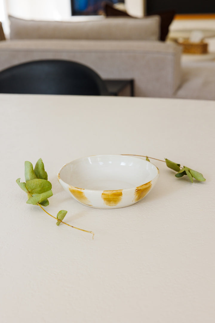 Handgevormd en laag van vorm ~ ideaal voor kleine salades, snacks of bijgerechten. Met een subtiele rand en zachte glazuurafwerking. Elke bowl is uniek, met een rustige uitstraling en natuurlijke imperfectie. Een veelzijdig stuk voor op tafel, elke dag opnieuw.