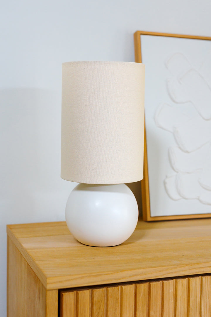 Met zijn bolvormige voet en compacte formaat brengt deze tafellamp subtiele elegantie in elke ruimte. De ronde vorm voegt zachtheid toe, terwijl het eenvoudige ontwerp zorgt voor rust. Perfect voor op een nachtkastje, plank of side table.