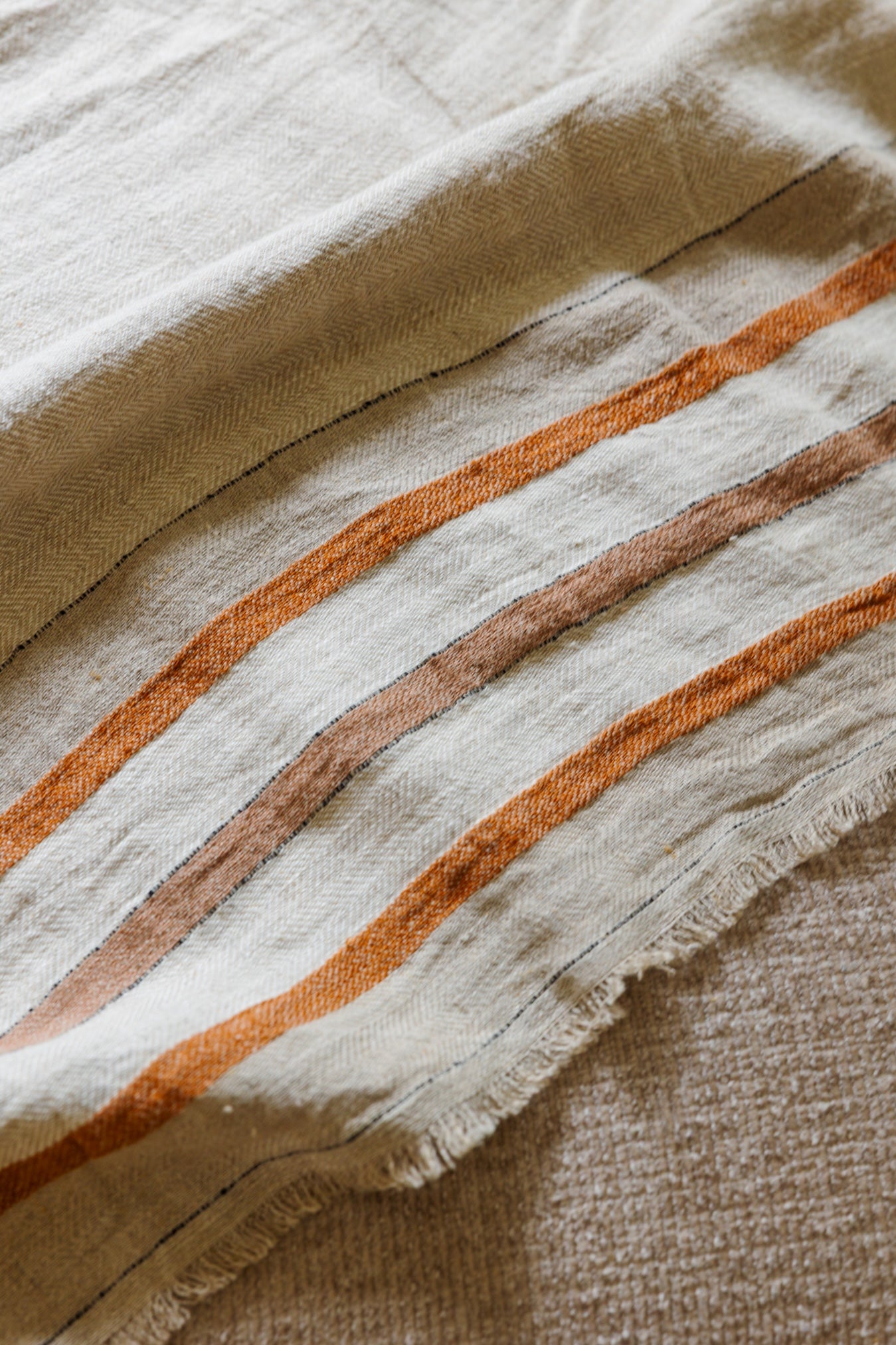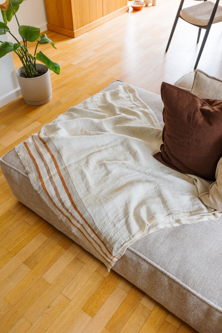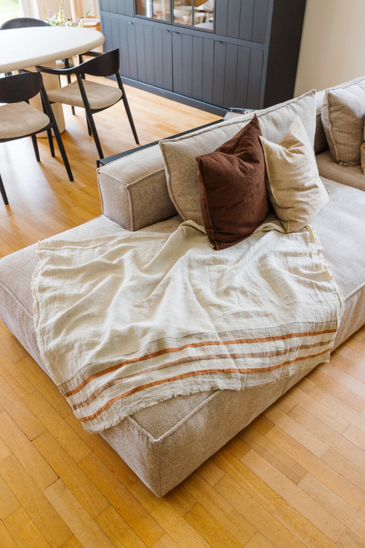 Breng rust en verfijning in je interieur met deze luxueuze linnen plaid.