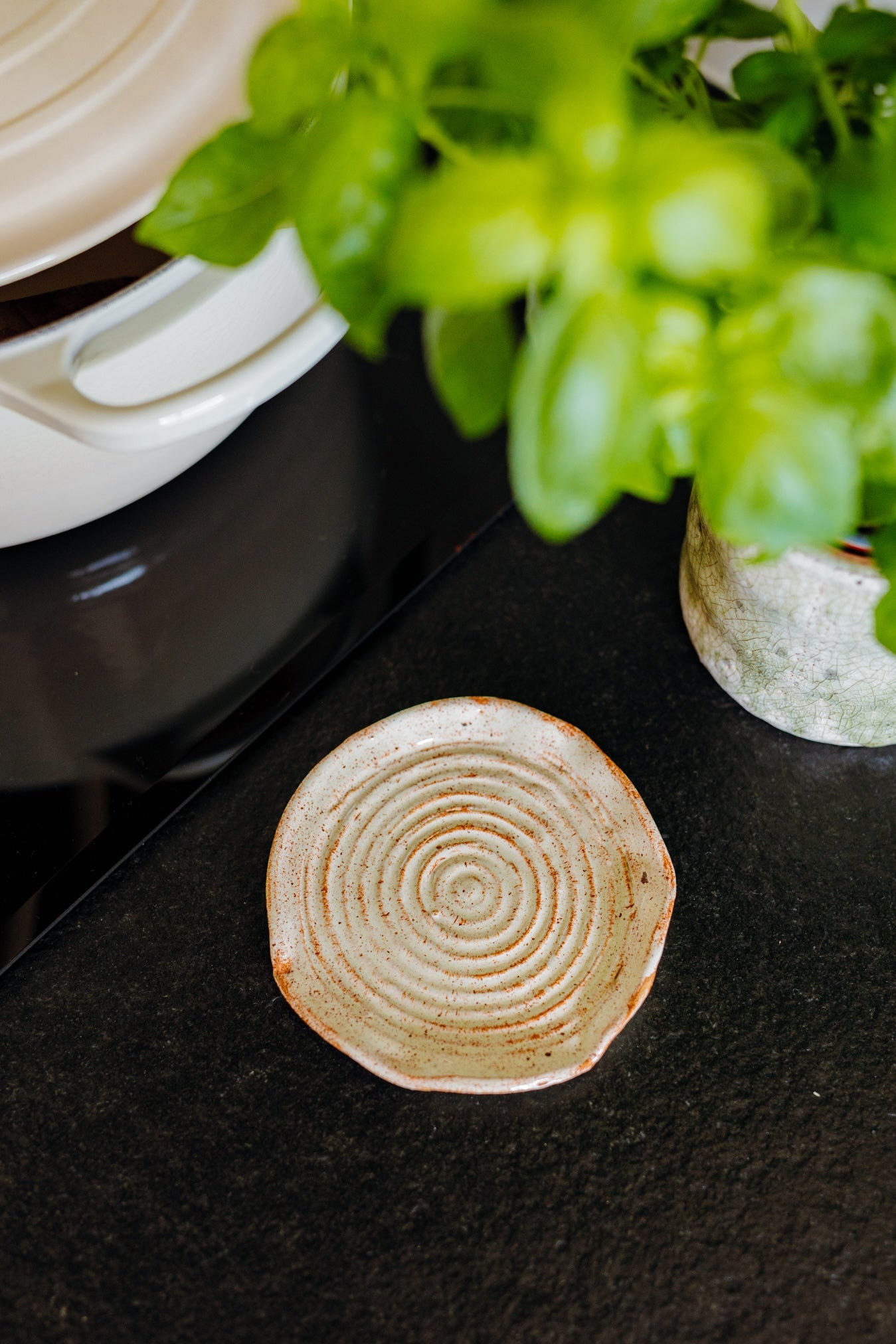 Handgevormd schaaltje, perfect om knoflook op te raspen en te serveren. De licht geribbelde bodem vangt sap en smaak op, voor extra aroma aan je gerecht. Uniek van vorm en met zachte, matte glazuur afgewerkt. Een praktisch en stijlvol detail in de keuken.