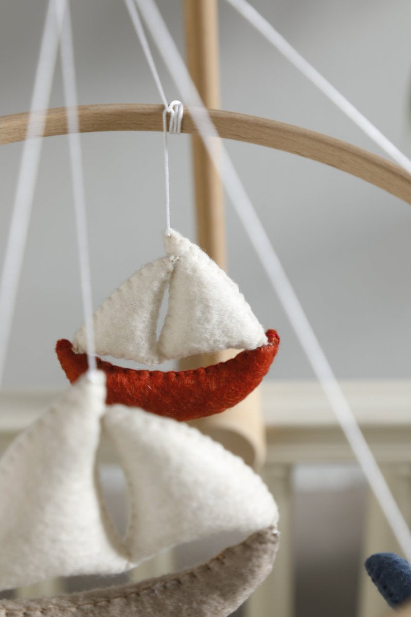 Met deze zeilboten en meeuwen mobiel voeg je een vleugje zee en avontuur toe aan de kinderkamer.
