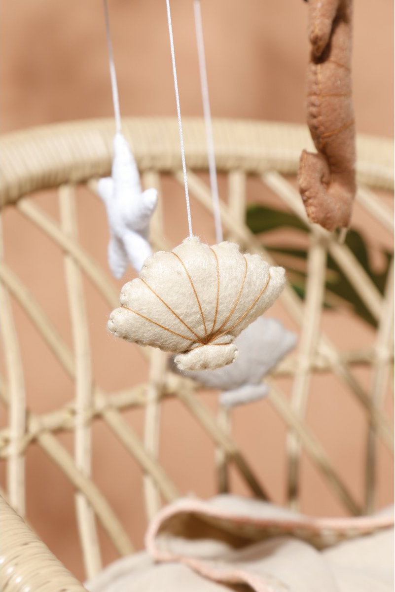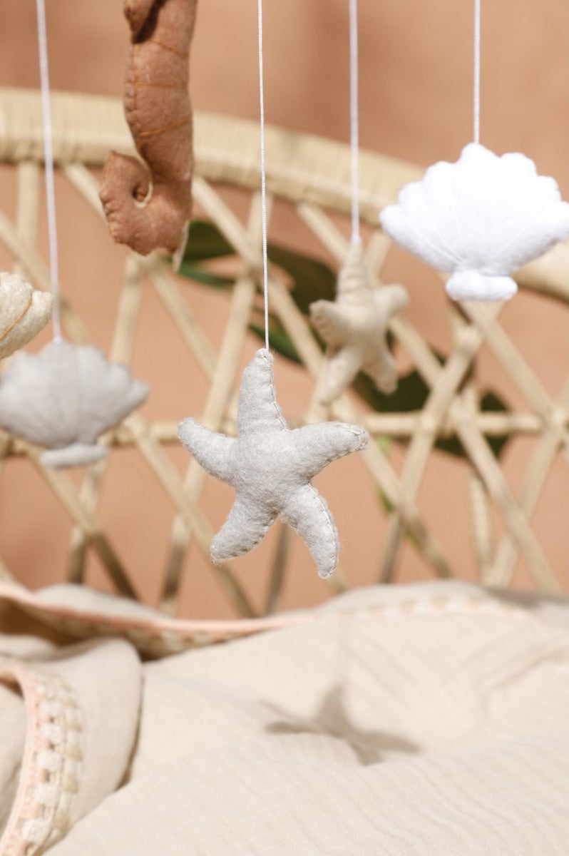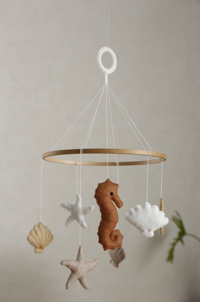 Met liefde gemaakt van zachte, duurzame materialen en geïnspireerd door de magie van de oceaan, creëert deze mobiel een kalme en dromerige omgeving voor je kleintje.
