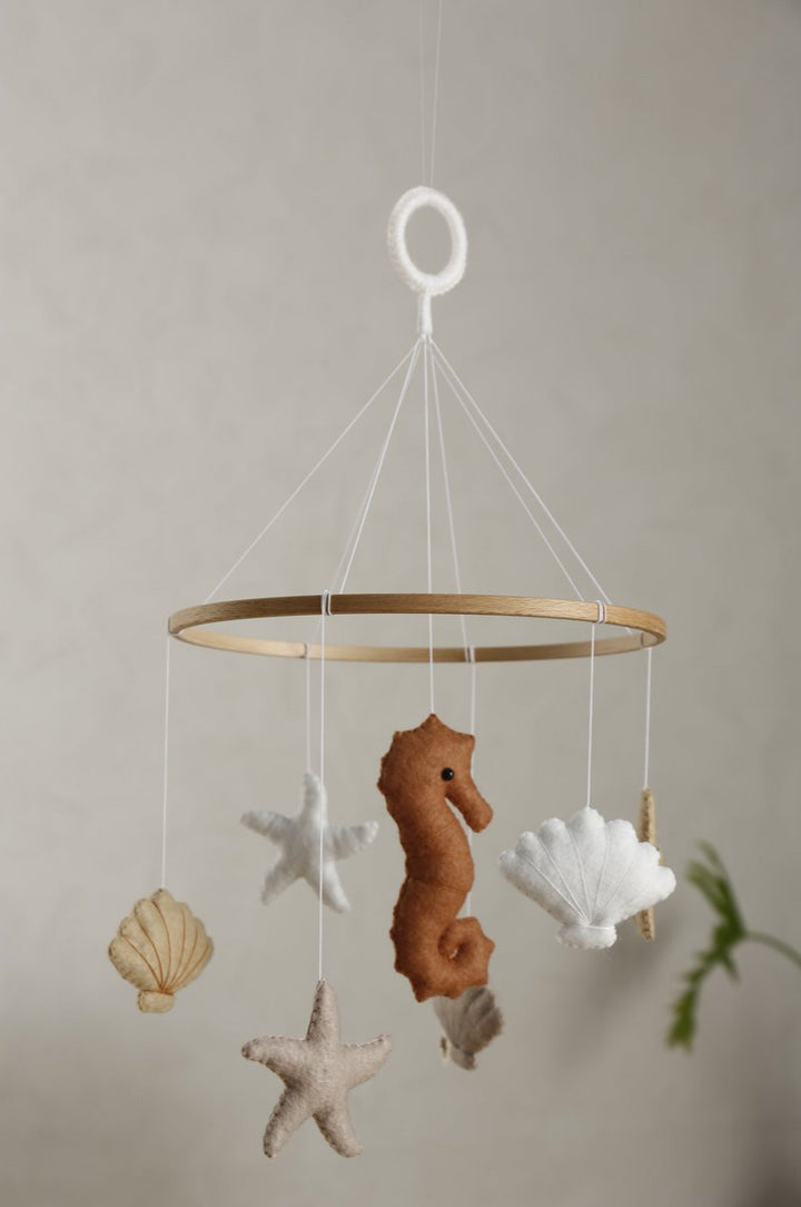 De mobiel bevat schattige zee-elementen zoals zeesterren, schelpjes en een zeepaardje. Terwijl de figuurtjes zachtjes bewegen, worden baby’s en peuters spelenderwijs gestimuleerd in hun ontwikkeling en verbeelding.