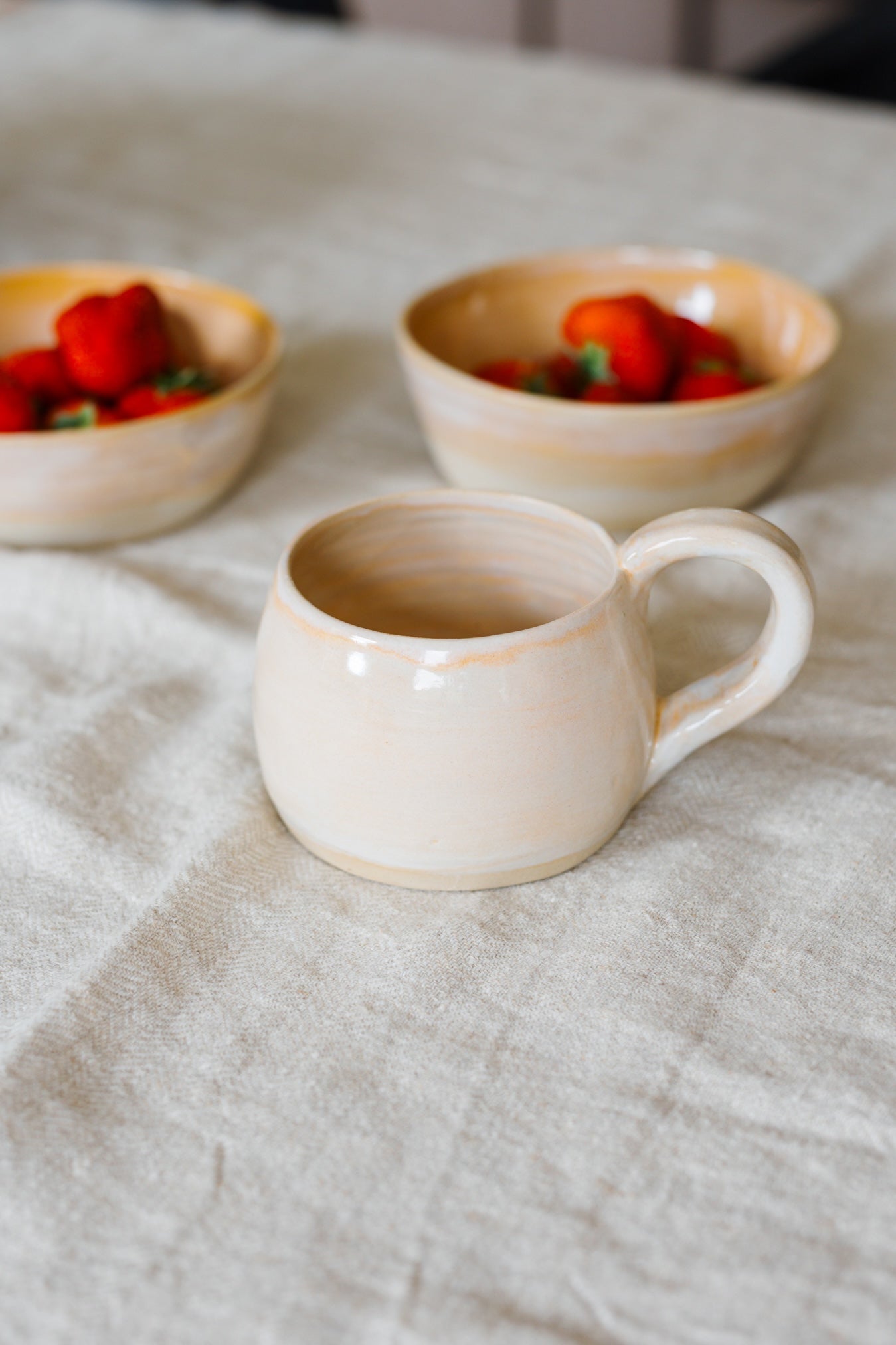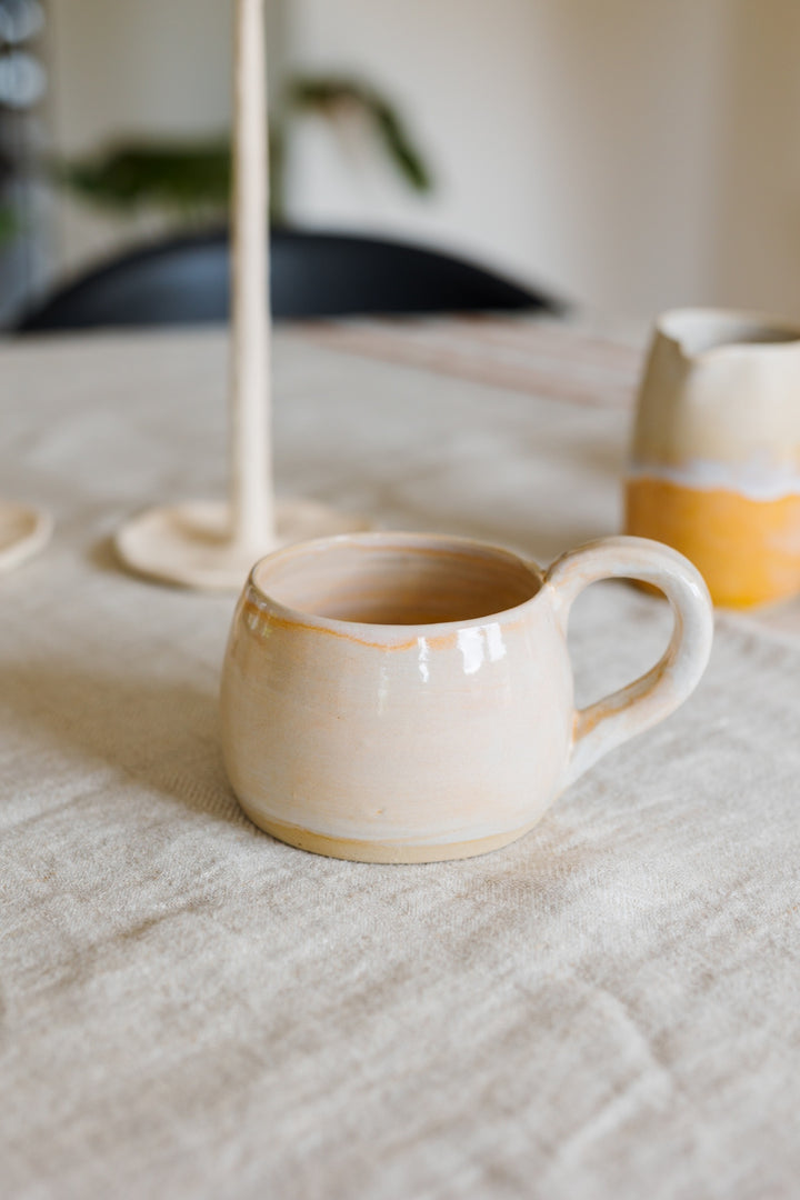Handgevormde keramiek met een stevig oor voor comfortabel vasthouden. Ruim genoeg voor een royale kop koffie of thee. Strak, organisch design met zachte, matte glazuur. Functioneel en elegant, perfect voor dagelijks gebruik.